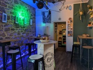 Unser Raum bietet Platz für bis zu 40 Personen drinnen – bei schönem Wetter können auch ca. 60 Gäste kommen.